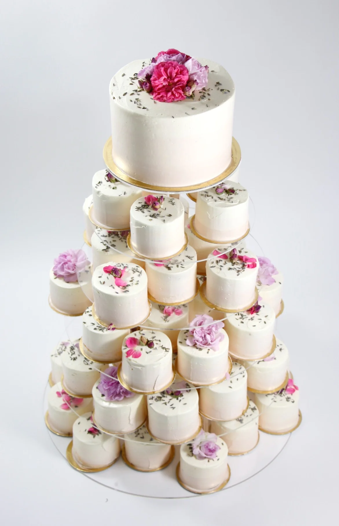 Hochzeitstorte mit passenden kleinen Törtchen.