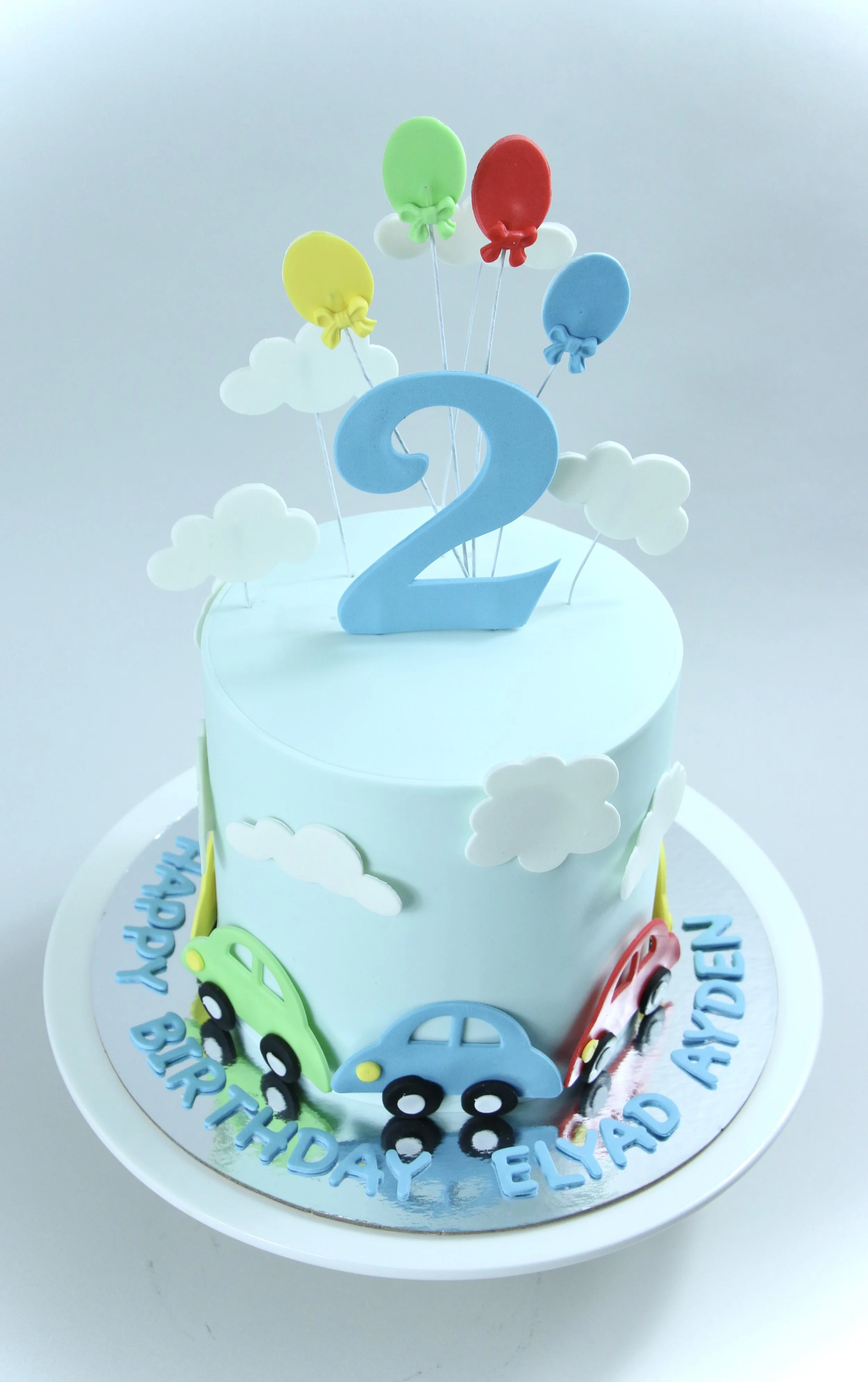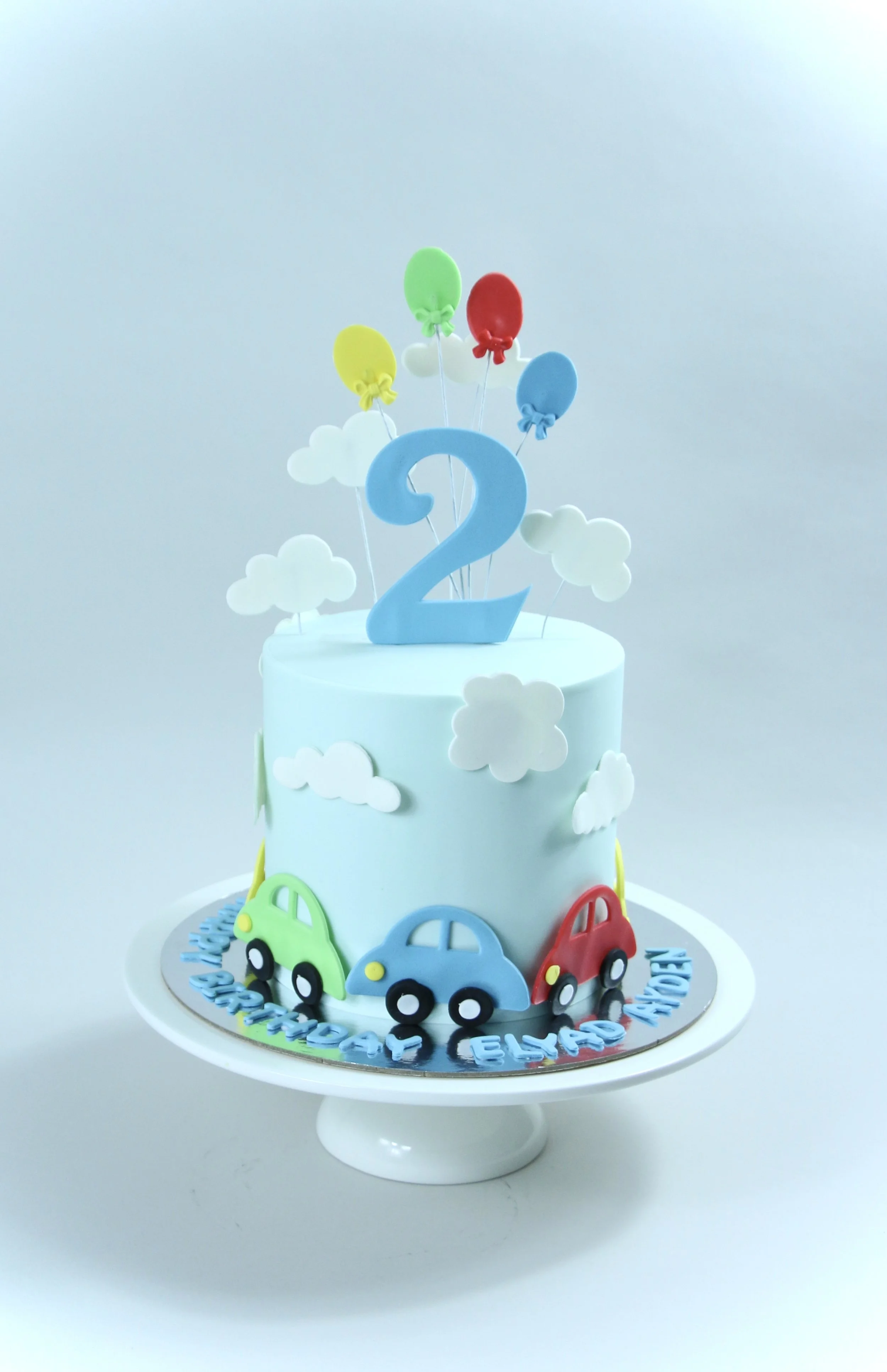 Diese liebevoll gestaltete Torte bringt Kinderaugen zum Strahlen – mit verspielten Wolken, bunten Autos und schwebenden Ballons ein echtes Highlight für jeden Geburtstag.